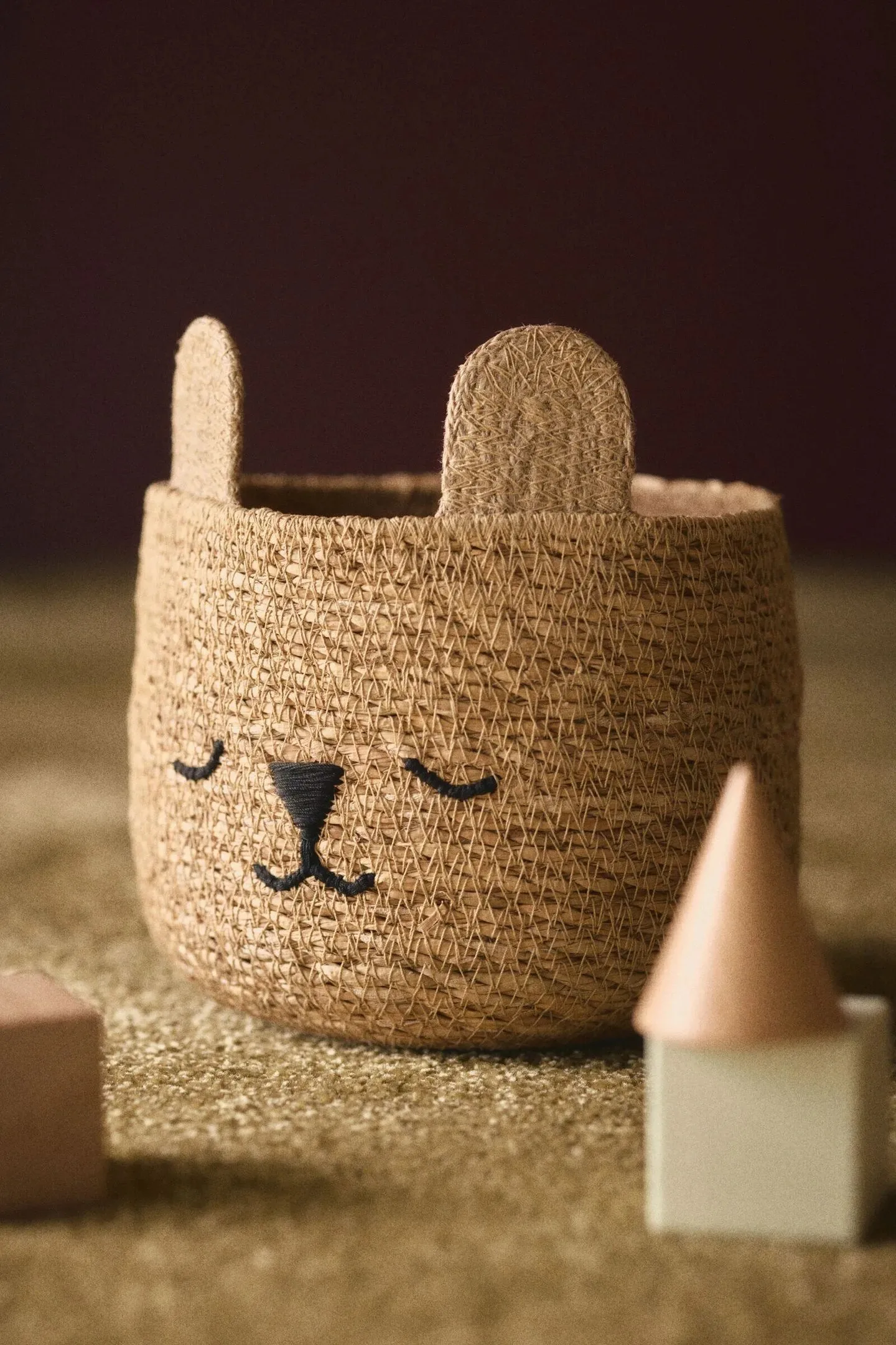 Canasto organizador hecho en seagrass con forma de oso.